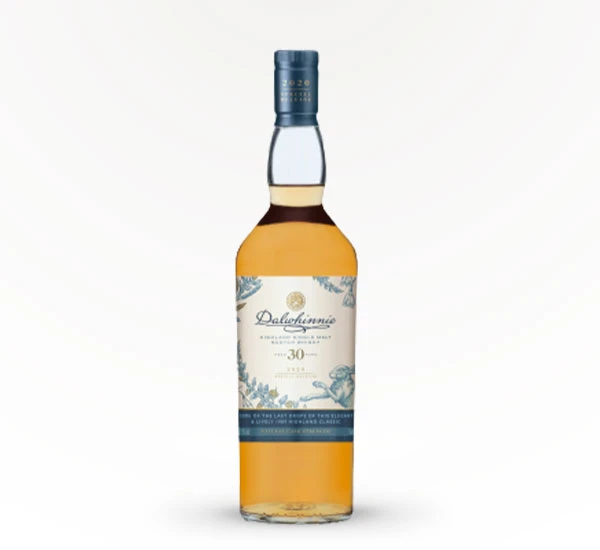 Savor some of the last drops of an elegant and lively 1989 Highland classic with Dalwhinnie 30 Year Old Single Malt Scotch Whisky. Patiently matured for three decades in refill American oak hogsheads, this ultrarare vintage Dalwhinnie has an astonishingly bright intensity for its age. The mellow aroma offers moorland scents and dried herbal notes alongside traces of butterscotch, hard fruit candy and spicy wood. Bottled at natural cask strength, this vibrant special release is creamy-smooth and sweet with a peppery, spicy warmth that gradually builds as it carries into a long finish. This elegant whisky is best served in a traditional whisky glass with a drop of water. Includes one 103.8 proof 750 mL bottle of Dalwhinnie 30 Year Old Single Malt Scotch Whisky. Please drink responsibly.